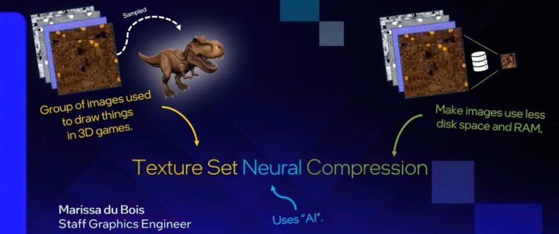Durante a Game Developers Conference 2026 (GDC 2026), a engenheira gráfica da Intel, Marissa du Bois, apresentou a versão da empresa para compressão neural de texturas.
