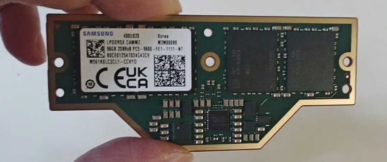 A memória LPCAMM2 com tecnologia LPDDR5X e capacidade de até 96 GB deve começar a ser produzida em larga escala em breve.